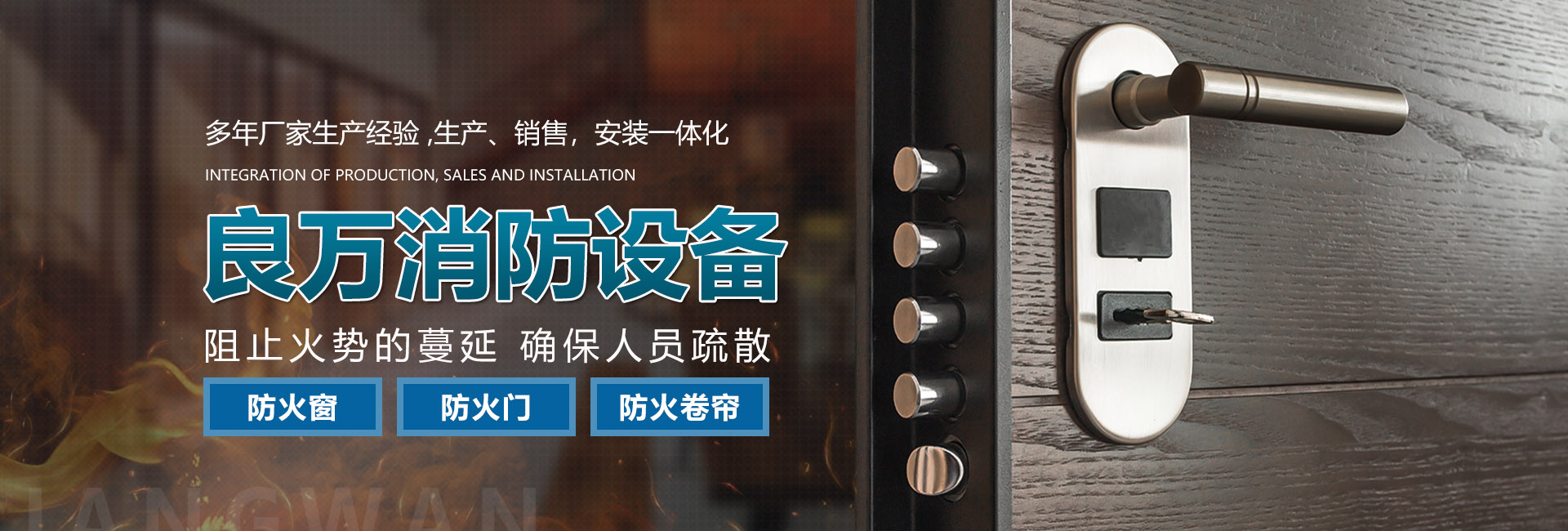 合肥良萬(wàn)消防設(shè)備有限公司位于合肥市包河工業(yè)園,專(zhuān)業(yè)生產(chǎn)銷(xiāo)售安裝:防火門(mén)、防火卷簾門(mén)、防火窗等消防安全產(chǎn)品。公司具有研發(fā)、設(shè)計(jì)、生產(chǎn)、銷(xiāo)售、及安裝服務(wù)的綜合配套能力。合肥良萬(wàn)消防設(shè)備有限公司技術(shù)力量雄厚,設(shè)備齊全,產(chǎn)品不斷創(chuàng)新,以信譽(yù)立業(yè),客戶(hù)滿(mǎn)意是我們永無(wú)止境的追求。我們?cè)诋a(chǎn)品質(zhì)量保證的同時(shí),也十分注重售后服務(wù),保證消防安全產(chǎn)品的正常運(yùn)行。公司始終堅(jiān)持誠(chéng)信為本的企業(yè)宗旨,真誠(chéng)希望與社會(huì)各界新老客戶(hù)精誠(chéng)合作,良萬(wàn)愿與您攜手共創(chuàng)輝煌!